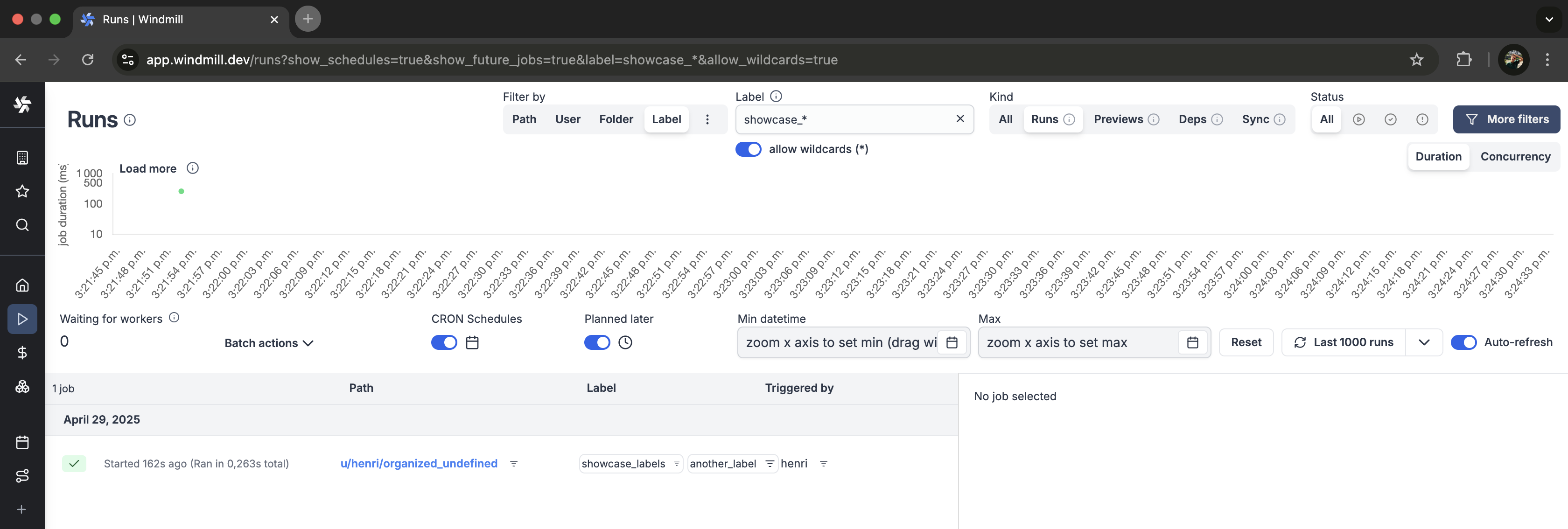 Now the db only stores at most 5Kb of logs per job rows, reducing the pressure on it by order of magnitudes, while users can now run jobs with unlimited logs with minimal impact on the worker or db. And the logs are still as live as before