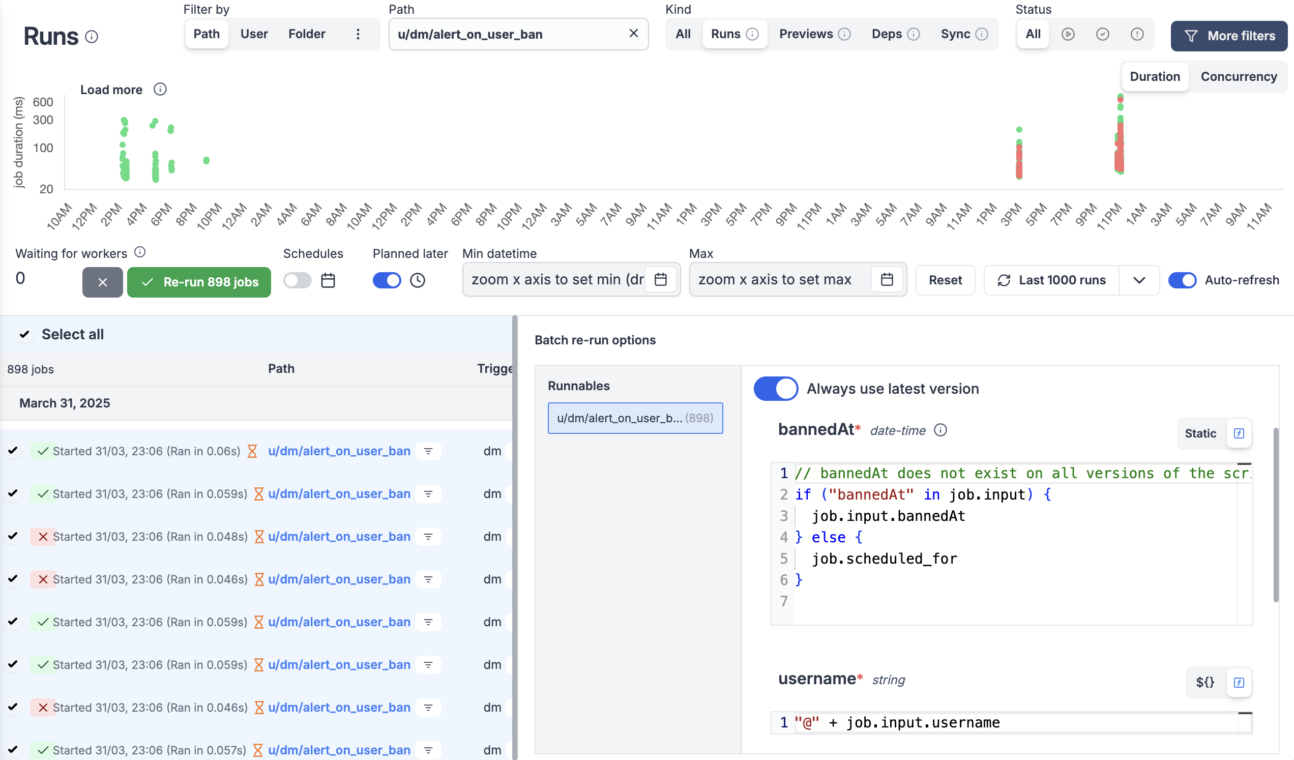 • Skip runs based on scriptable custom conditions (weekends, holidays, API availability)