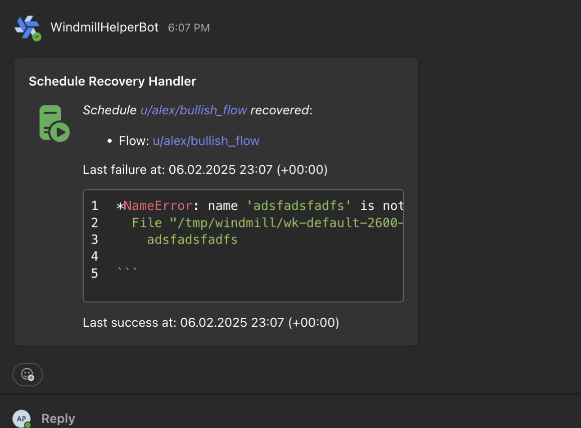 Trigger Windmill scripts by @mentioning the Windmill bot in Slack channels, threads, or direct messages - in addition to slash commands.